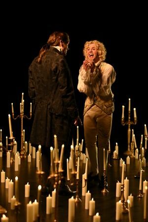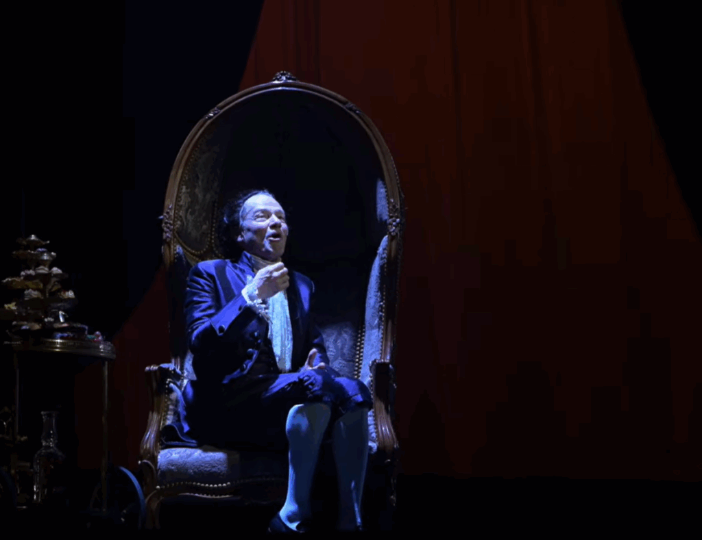 Puis sur scène, la mise en scène d’Olivier Solivérès fait basculer le spectacle dans une sorte de rêve : candélabres, partitions, voiles, masques et cette sensation permanente que la musique ne sert pas seulement de décor… mais qu’elle devient une force dramatique.