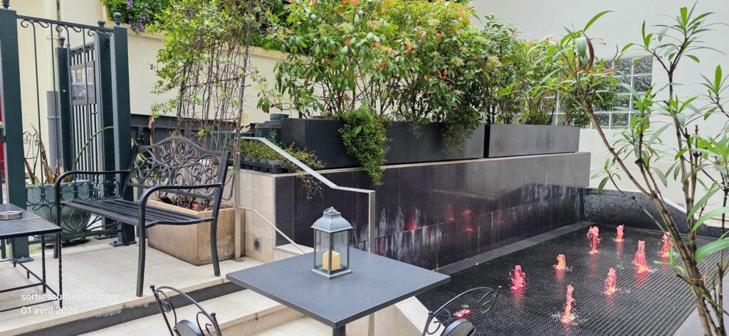 Aux beaux jours, la terrasse, à l’abri de l’agitation offre un cadre intime et végétalisé propice à la détente. Un lieu où le temps semble suspendu, idéal pour savourer un déjeuner ensoleillé ou un dîner plus confidentiel.