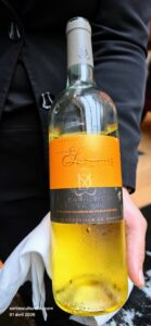 Le Carpaccio de fruits frais, sorbet coco maison, tuile croustillante au zeste d’orange apporte fraîcheur et légèreté en fin de repas. Il est accompagné d’un Pacherenc du Vic-Bilh – Domaine Sergent aux notes fruitées et légèrement miellées qui enveloppent le dessert avec élégance.